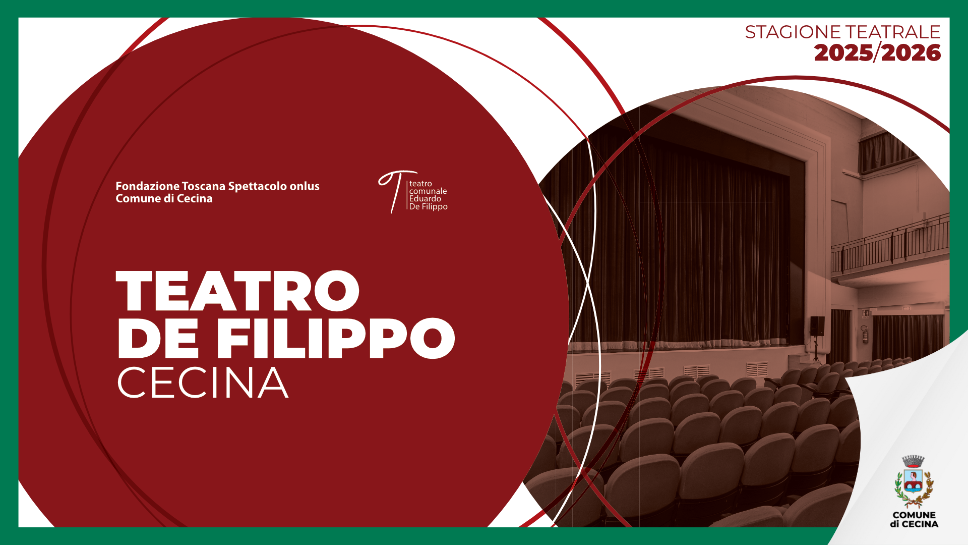 La nuova stagione del Teatro De Filippo rappresenta un’occasione per tutta la comunità di Cecina: autori e interpreti di valore assoluto danno corpo a un programma di spettacoli in cui la prosa, la danza, i riferimenti ai classici e uno sguardo attento sul presente compongono un percorso di riflessione e scoperta per un’ampia platea di spettatori.