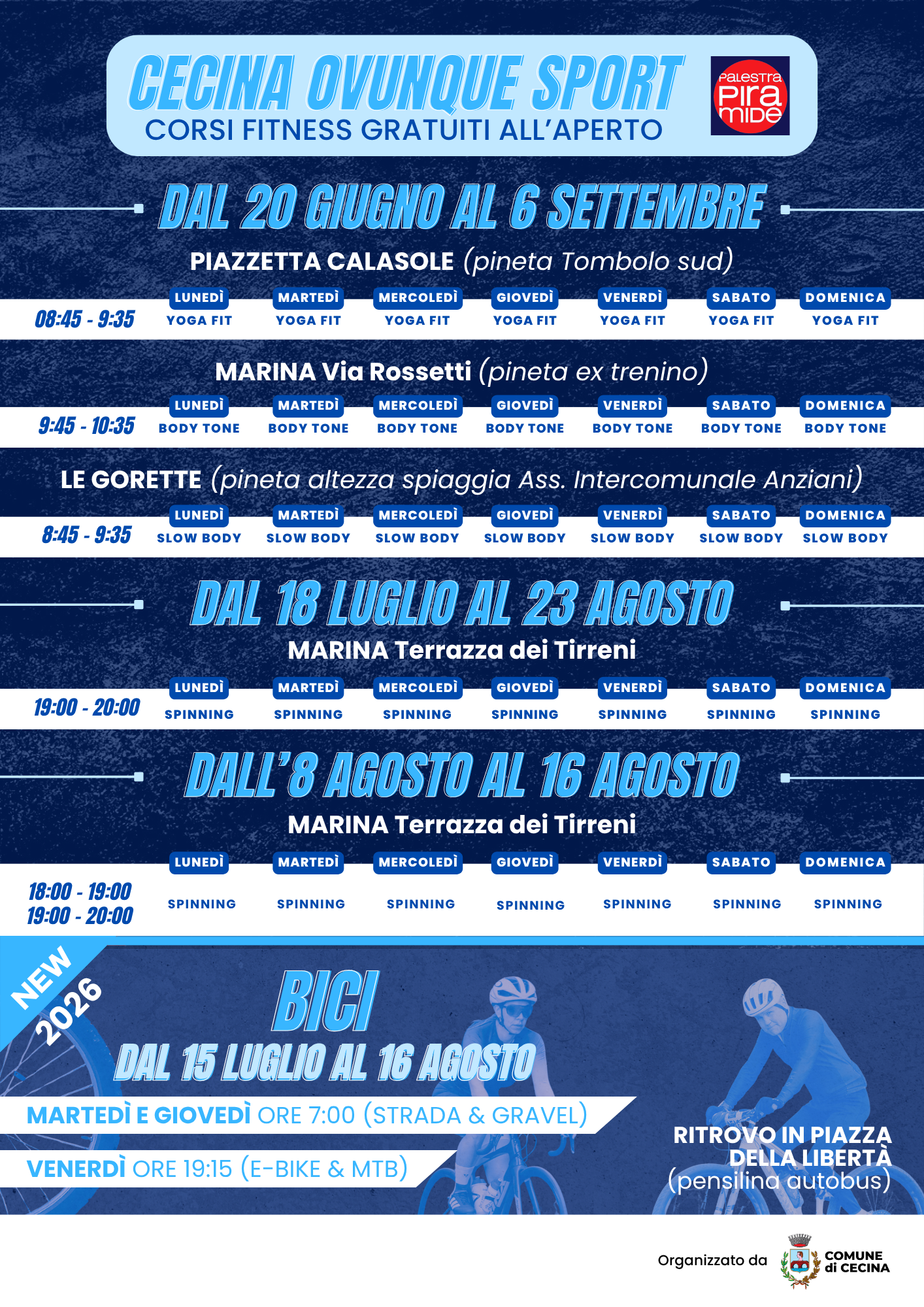 Cecina Ovunque Sport: corsi fitness gratuti in pineta e lungomare